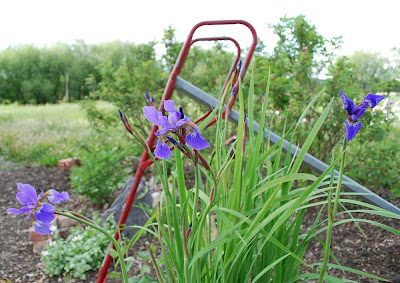 The german purple are all almost done and the blue and white opened today. This is the first patch of this variety to open. It is off the front deck next to the rhubarb. Everything in that spot is early and big this year so far.